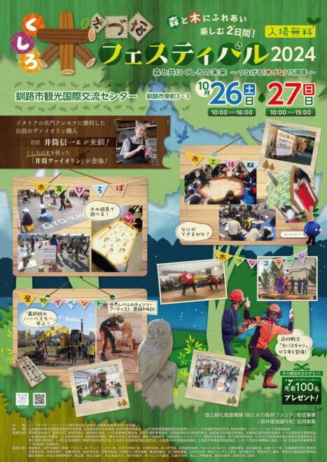 釧根支部会員組合の厚岸木材工業協同組合・厚浜木材加工協同組合が協賛、出展する「くしろ木づなフェスティバル2024」が釧路市観光国際交流センターで10月26日(土)~27日(日)の2日間、開催されます。